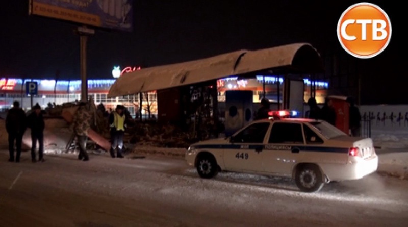 Водитель авто снес остановочный комплекс в Алматы Кадр телеканала ©СТВ "Территория происшествий"