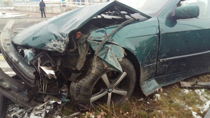 Инцидент произошел днем 14 октября около 14.00 на пересечении улицы Момышулы и проспекта Рыскулова. Автомобиль BMW двигался по проспекту в восточном направлении и начал поворачивать направо на Момышулы, но водитель не справился с управлением. В результате происшествия машина снесла две секции железного ограждения на перекрестке. Отмечается, что по приезде скорой помощи был обследован водитель, в госпитализации он не нуждался.