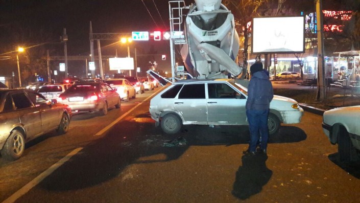 Авария произошла на пересечении проспектов Абая и Алтынсарина. По словам очевидцев, BMW X5 двигался по Абая в восточном направлении и "играл в шашечки". Перед перекрестком водитель внедорожника зацепил Toyota, снеся ей зеркало, после чего на полном ходу влетел в ВАЗ-2114. От удара легковое авто отбросило в бетономешалку, а BMW X5 отлетел в другом направлении и столкнулся с Renault.