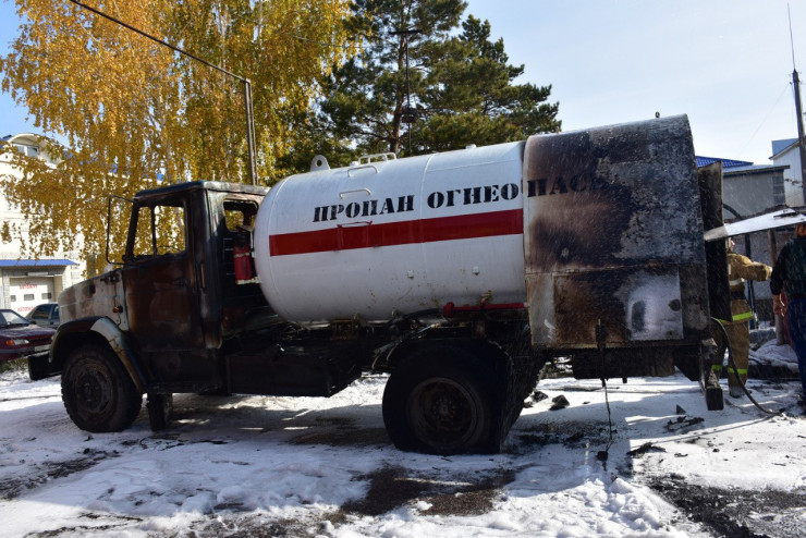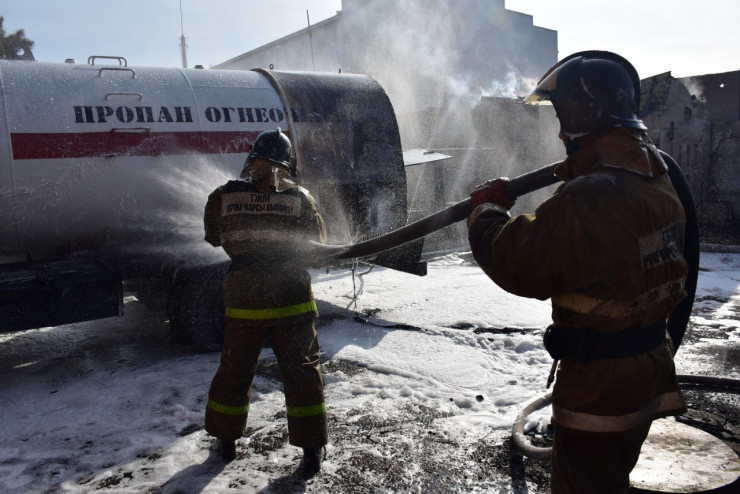 Площадь возгорания составила 20 квадратных метров. От огня пострадали газовоз и отдельные элементы конструкции автозаправочной станции. Причина пожара устанавливается.