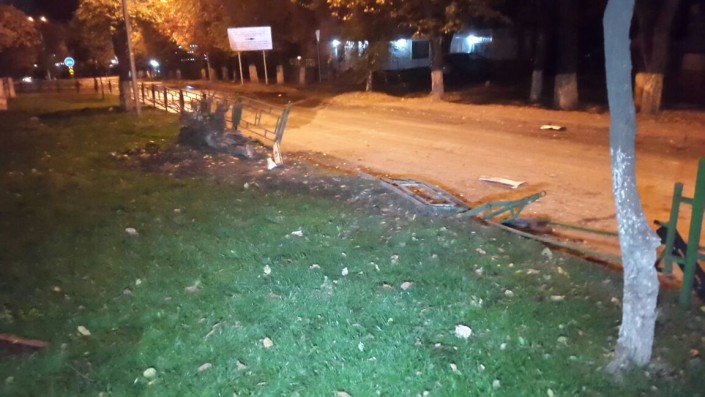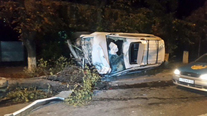По словам очевидцев, водитель авто не справился с управлением. В результате Lexus перелетел через разделительный газон, сбил два дерева и перевернулся на бок.