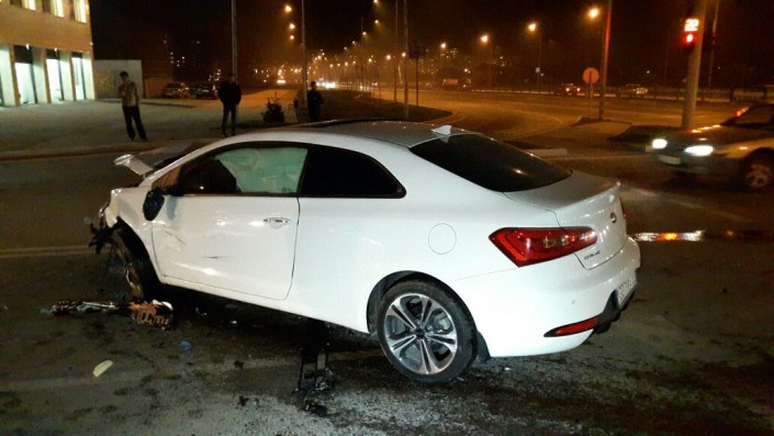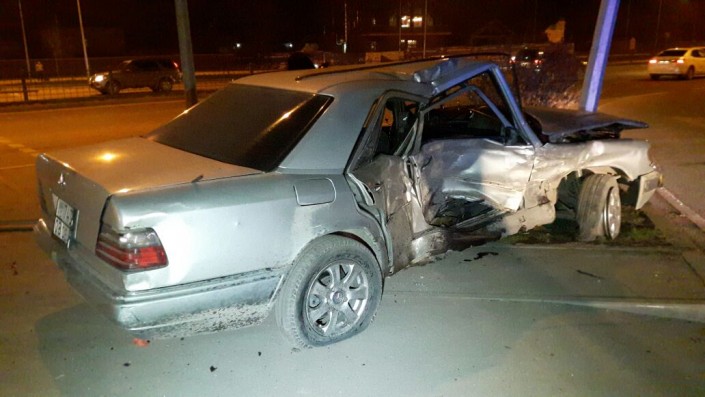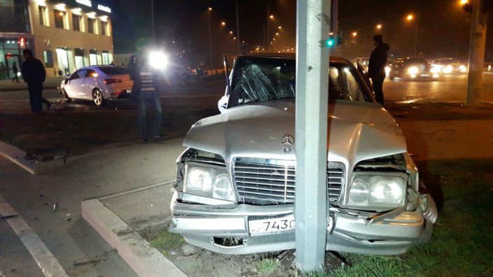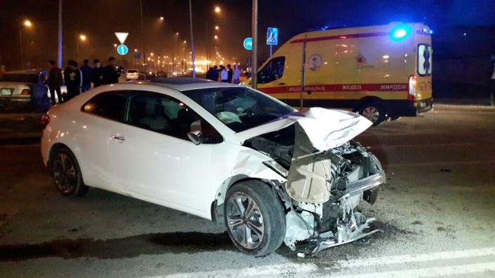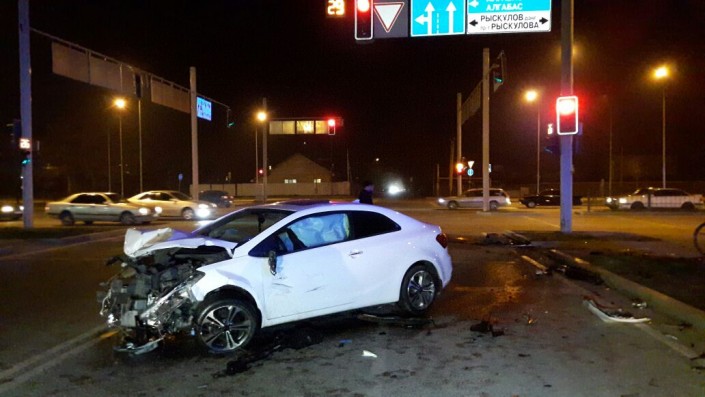 ДТП произошло на пересечении проспекта Рыскулова и улицы Шарипова. По данным свидетелей, водитель Mercedes двигался по Рыскулова в западном направлении и хотел совершить левый поворот на улицу Шарипова. В этот момент на перекресток на зеленый свет выехала Kia, двигавшаяся в восточном направлении. Произошло столкновение. От удара Mercedes отбросило в мачту уличного освещения.