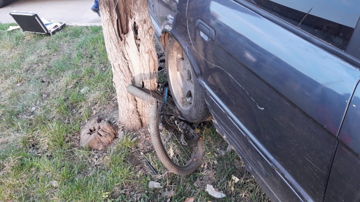 Водитель сбил велосипедиста и врезался в дерево в Алматы, сообщает корреспондент программы "Территория происшествий" на телеканале СТВ.