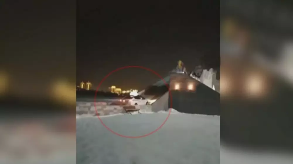 Водитель такси пытался заехать на ледяную горку в Нур-Султане, передает Tengrinews.kz.