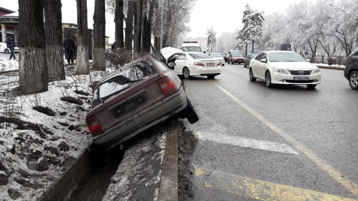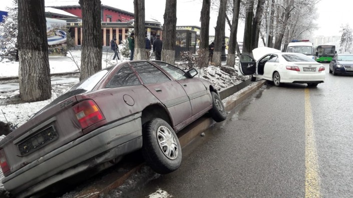 Opel следовал по Аль-Фараби в крайнем правом ряду, а Toyota Camry - в левом. Camry начало кидать из стороны в сторону, водитель не справился с управлением и ударил в бок Opel. От удара обе машины влетели в арык.