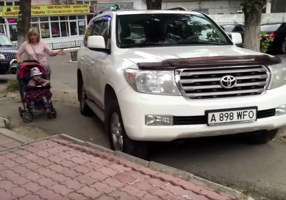 Водителя Land Cruiser 200, припарковавшегося на тротуаре, наказали в Алматы Кадр из видеоролика YouTube
