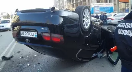 Согласно информации, 8 апреля в столице около 18 часов вечера водитель автомашины Lexus, не имеющий при себе водительского удостоверения, двигаясь в крайнем левом ряду по проспекту Республики, подъезжая к улице Сейфуллина, в результате резкого торможения и заноса автомашины не справился с управлением и допустил опрокидывание и столкновение со стоящими во встречном направлении авто Chevrolet Aveo, Газель и Hyundai Elantra.