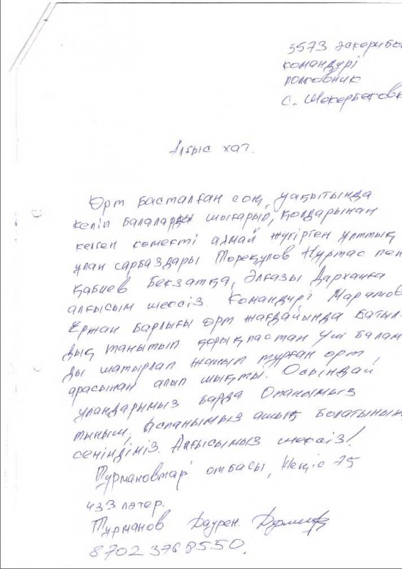 После этого военнослужащие Нуртас Торекул, Дархан Альгазы и Бекзат Кабиев решили подняться на верхние этажи. Услышав голоса, быстро сориентировались. Несмотря на густой дым и сильный запах угарного газа, солдаты организовали эвакуацию людей, которые остались в своих комнатах, - 7 человек, из них пятеро детей.