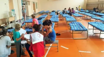 Сотрудники и волонтеры доставили горячую еду, воду, одеяла и санитарно-гигиенические принадлежности. По данным представителей Красного Полумесяца, на данный момент в здании осталось порядка 60 человек - это женщины и дети. Мужчины же покинули школу, чтобы посмотреть, что стало с их домами и оценить нанесенный ущерб.