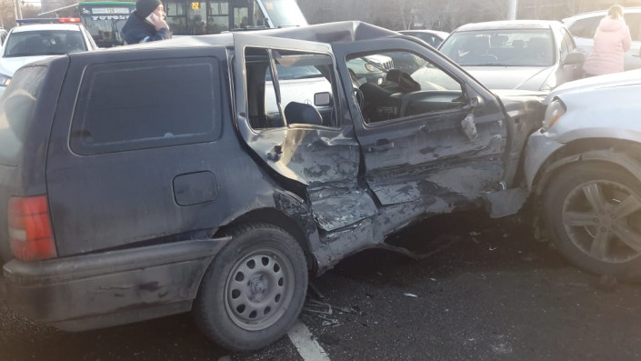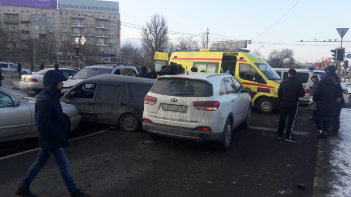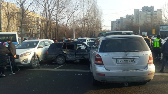 В Алматы случилось массовое дорожно-транспортное происшествие. На пересечении улиц Саина и Жандосова столкнулись восемь автомобилей, передает корреспондент программы "Территория происшествий" на канале СТВ.