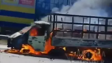 Видео инцидента распространяется в социальных сетях. Очевидцы сообщили, что на дороге недалеко от магазина "12 месяцев" взорвалась "ГАЗель".