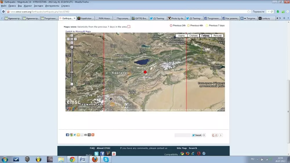 Землетрясение магнитудой 3,6 произошло в Кыргызстане Карта с указанием эпицентра землетрясения с сайта emsc-csem.org