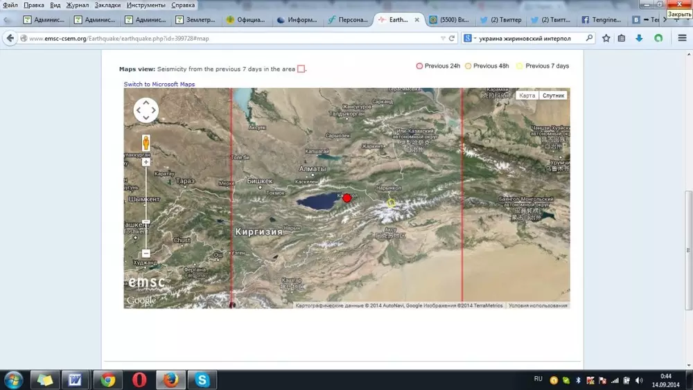 В 141 километре к юго-востоку от Алматы 13 сентября в 23.16 по местному времени зафиксировано землетрясение магнитудой 3,8, передает корреспондент Tengrinews.kz со ссылкой на Европейско-Средиземноморский сейсмологический центр.