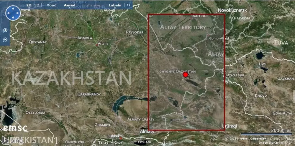 Землетрясение магнитудой 4,0 произошло в 150 километрах от Усть-Каменогорска Карта с указанием эпицентра землетрясения с сайта emsc-csem.org