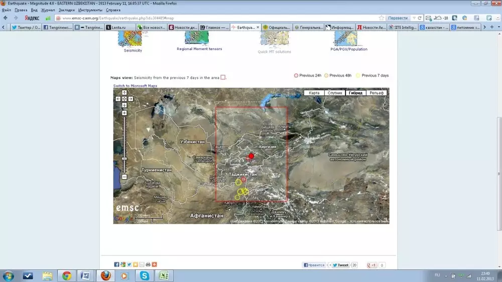 На территории Узбекистана в 22.05 по времени Астаны произошло землетрясение магнитудой 4,0, передает корреспондент Tengrinews.kz со ссылкой на Европейско-Средиземноморский сейсмологический центр. Очаг землетрясения зафиксирован на глубине одного километра. Эпицентр подземных толчков располагался в шести километрах к юго-западу от города Мархамат, в 35 километрах к югу от Андижана и в 265 километрах к востоку от Ташкента - столицы республики. Информации о жертвах и разрушениях нет.