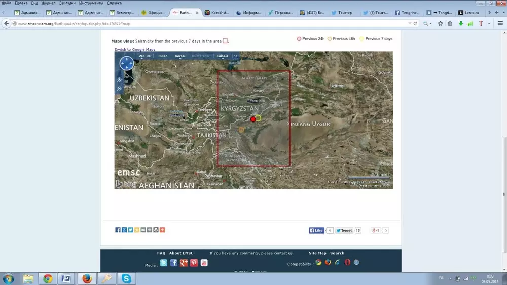 Землетрясение магнитудой 4,1 произошло в 313 километрах от Алматы Карта с указанием эпицентра землетрясения с сайта emsc-csem.org