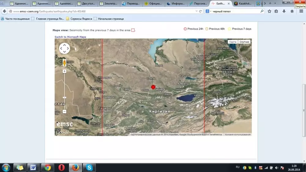 В 240 километрах к западу от Алматы 25 сентября в 23.59 по времени Астаны зафиксировано землетрясение магнитудой 4,8, передает корреспондент Tengrinews.kz со ссылкой на Казахстанский национальный центр данных.