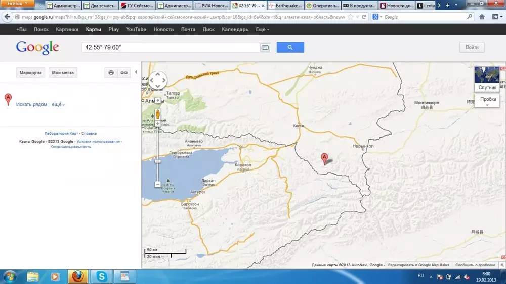 Землетрясение магнитудой 5,2 произошло в Алматинской области, сообщается на сайте сейсмологической опытно-методической экспедиции Комитета науки Министерства образования и науки Казахстана. Подземные толчки были зафиксированы 19 февраля в 06.36 по времени Астаны. Эпицентр землетрясения находился в 231-м километре на юго-восток от Алматы. Энергетический класс землетрясения составил 11,3, глубина - 15 километров. Информации о жертвах и разрушениях нет. Напомним, ранее в 360 километрах к югу от Алматы с интервалом в полчаса произошли два землетрясения магнитудой 5,4 и 4,8.