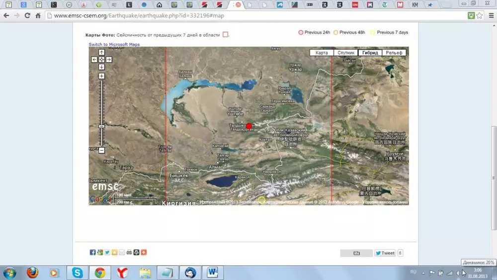 30 августа в 20.36 по местному времени в 240 километрах к северо-востоку от Алматы произошло землетрясение. Подземный толчок зафиксирован сетью сейсмических станций государственного учреждения "Сейсмологическая опытно-методическая экспедиция Комитета науки Министерства образования и науки Казахстана", говорится на сайте ведомства.