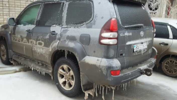 Автомобилисты с утра не могут попасть внутрь своих машин, приходится разбивать толстый слой льда, прежде чем открыть дверцы авто. При этом некоторые из них поливают машину горячей или соленой водой, чтобы корка льда немного отошла.