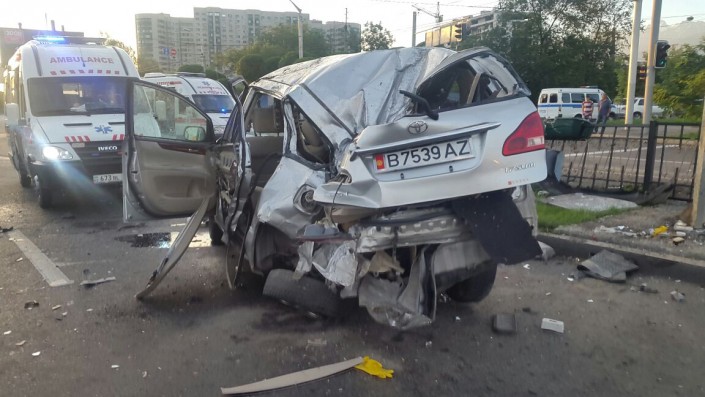 Тем временем Toyota Ipsum с кыргызскими номерами двигалась в западном направлении по проспекту Абая. По предварительной информации, она также проехала на мигающий зеленый свет светофора.