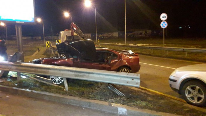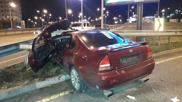 По словам свидетелей, автомобиль Honda несся по проспекту в восточном направлении. Водитель не справился с управлением и врезался в металлический отбойник. После совершения ДТП водитель Honda сбежал.