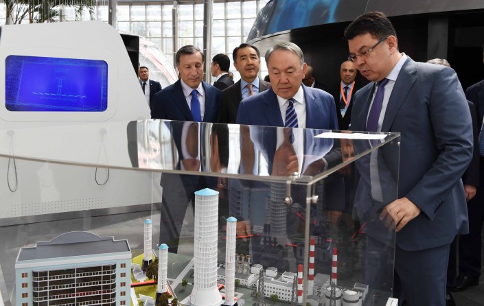 Вниманию Президента Казахстана были представлены: экспозиция "Будущая Астана – столица Казахстана в 2050 году", зал космической энергии, зона "Созидательная энергия" с 28 казахстанскими научными проектами и проектами по концепции "Зеленая экономика", а также модель казахстанского материаловедческого термоядерного реактора "Токамак" и медиа-стена с инициативами Главы государства в области энергетики и охраны окружающей среды.