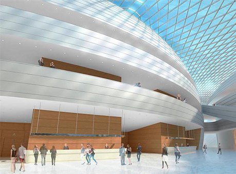 Несколько выставочных залов на уровне первого этажа предусматриваются многофункциональными: во время EXPO в них будут проходить тематические конференции, сессии. Большое атриумное пространство позволяет наполнить здание естественным светом и дополняет общее эстетическое восприятие.