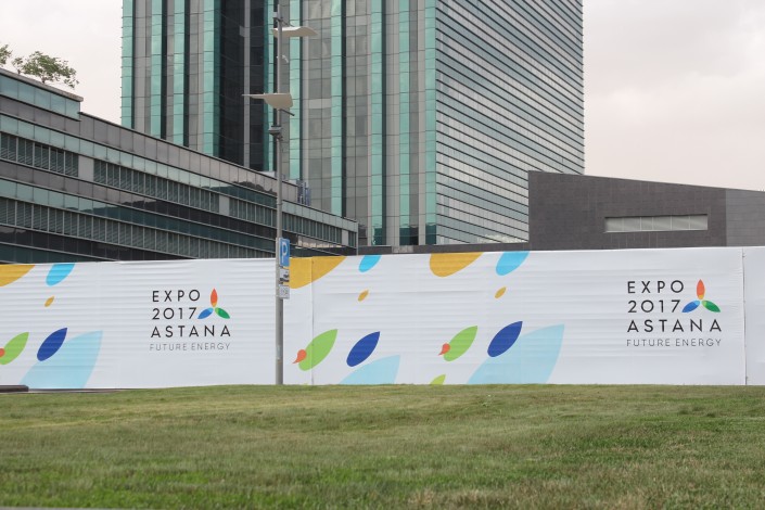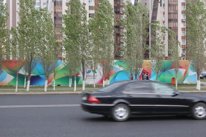 Первое, что сразу бросается в глаза, - обилие заборов с символикой EXPO.