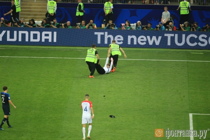 Инцидент произошел во втором тайме решающей игры. На 53-й минуте в ходе атаки сборной Хорватии на поле выбежали несколько болельщиков. Игра была прервана ненадолго и вновь возобновлена.