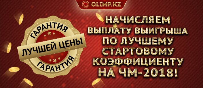 На все матчи ЧМ-2018 БК "Олимп" осуществляет расчет всех ставок на П1, Х и П2 по лучшему стартовому коэффициенту. Подробности на сайте olimp.kz в разделе "Правила" пункт 6.21.