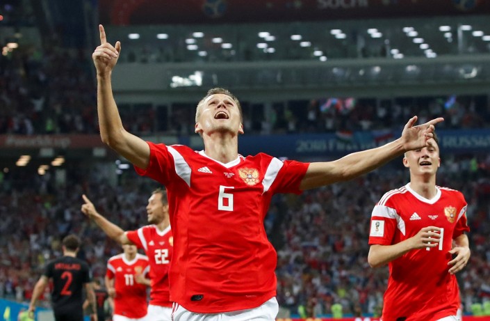 Эта стратегия приносит свои результаты и на 115 минуте встречи россияне уходят от поражения. Алан Дзагоев подал штрафной на Марио Фернандеса, последнего этнического бразильца на этом чемпионате, который ударом головой отправил мяч в свободный от вратаря угол.