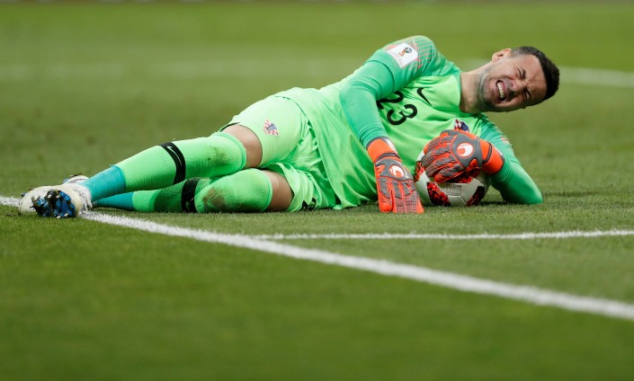 В конце второго тайма голкипер хорватов Даниэль Субашич парирует удар Смолова в ближний угол, а минутой позже получает травму после прыжка за мячом, уходящим за линию ворот.