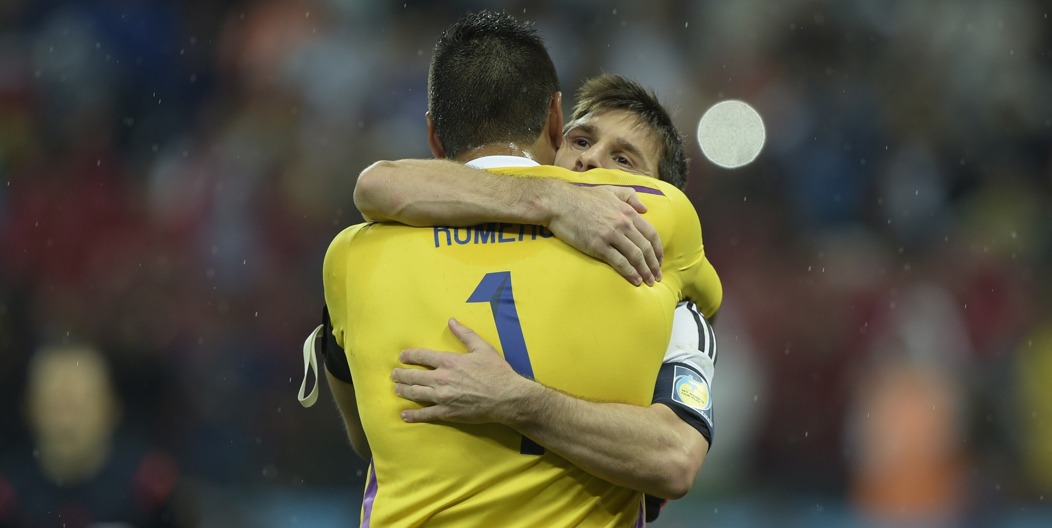 9 июля. Две опоры Аргентины на ЧМ в одном кадре: капитан-бомбардир Лионель Месси и Серхио Ромеро, отразивший два удара "Оранье" в серии пенальти.