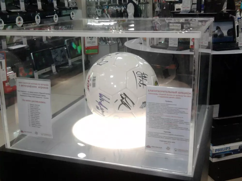 Мяч выставлен в павильоне магазина "Меломан Гранд" на два месяца. Желающие приобрести его смогут оставить свои заявки в магазине, а также на сайте www.donations.komandasos.kz.