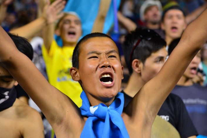 Форвард "Астаны" Бауржан Джолчиев забил мяч в ворота кипрского АПОЭЛа в первом матче раунда плей-офф Лиги чемпионов на 14-й минуте встречи. Джолчиев переправил мяч головой в ворота АПОЭЛа после передачи Фокси Кетевоамы. Матч проходит в эти минуты в столице Казахстана на стадионе "Астана Арена".
