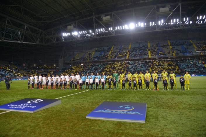 С первых минут обе команды показывали равную игру. "Астана" не тушевалась более опытного и именитого соперника и ни в чем ему не уступала. Уже на второй минуте казахстанский клуб заработал штрафной удар, который не завершился голом.
