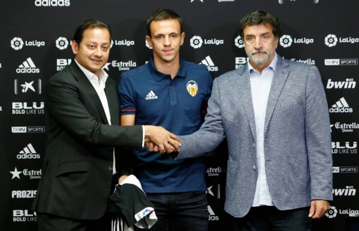Слева-направо: президент "Валенсии" Анил Марти, Максимович и спортивный директор клуба Хосе Рамон Алесанко
