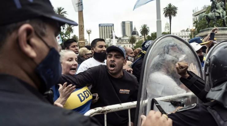 Во время церемонии прощания с Диего Марадоной в столице Аргентины начались беспорядки. Полиция в Буэнос-Айресе применила слезоточивый газ против нарушителей, передает Tengrinews.kz со ссылкой на местный телеканал TN.