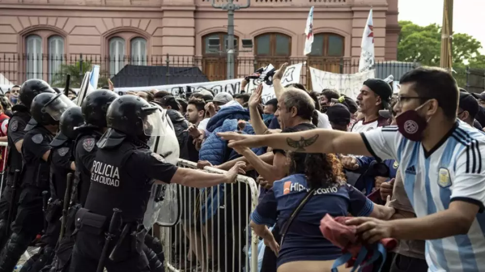 Прощание с Марадоной проходило в президентском дворце. Желающих проводить своего кумира в последний путь впускали в здание по очереди. Однако позже стало известно, что прощание с легендарным футболистом закончится в 16:00 по местному времени. Затем у входа во дворец начались беспорядки: произошло столкновение между полицией и поклонниками Марадоны.