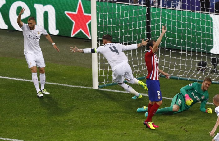 Однако своим шансом подопечные Диего Симеоне не воспользовались. Первый гол в этой встрече на 15-й минуте забил капитан "Галактикос" Серхио Рамос. Защитник буквально заковырял мяч между ног Яна Облака после штрафного Тони Крооса.