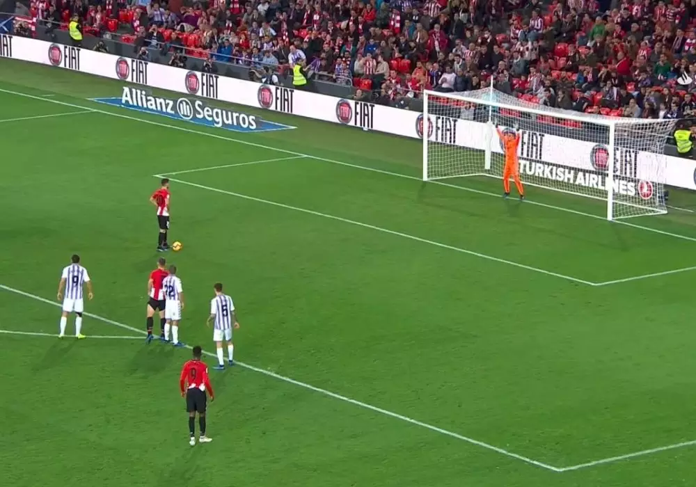 Необычный и крайне редкий пенальти исполнил нападающий клуба "Атлетик Бильбао" Ариц Адурис в субботнем матче в рамках чемпионата Испании против "Реал Вальядолид", сообщает Eurosport.