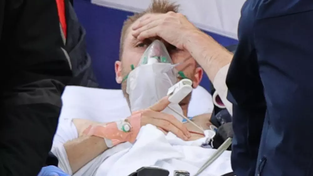 Сборная Дании 12 июня уступила команде Финляндии со счетом 0:1. В конце первого тайма 29-летний Эриксен упал и потерял сознание. На протяжении нескольких минут врачи оказывали игроку первую помощь, в том числе делали непрямой массаж сердца. Затем футболиста увезли в подтрибунное помещение. Встреча была прервана, но впоследствии доиграна. Позднее главный тренер датской команды Каспер Хьюлманд сообщил, что Эриксен перенес на поле остановку сердца. Игрок все еще остается в больнице.