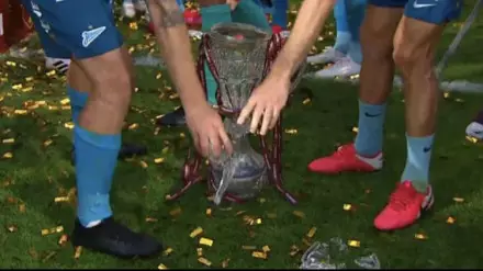 Игроки петербургского футбольного клуба "Зенит" уронили хрустальный трофей во время празднования победы в финале Кубка России со счетом 1:0 над "Химками", передает Tengrinews.kz со ссылкой на Eurosport.