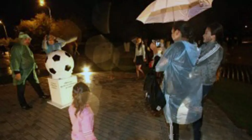 Официальное открытие и презентация постамента с футбольным мячом состоялась 24 августа. Монумент стал новой достопримечательностью города. Однако через некоторое время он исчез, горожане предположили, что его украли. Как пояснил заместитель начальника управления скверами и парками культуры и отдыха Олег Хмелинин, памятник убрали временно.
