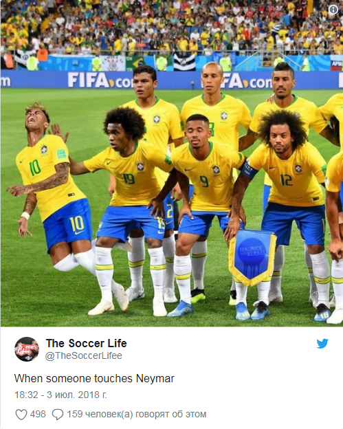 Ранее бывший нападающий сборной Бразилии Роналдо, отвечая на вопрос о симуляциях Неймара, рассказал, что это может быть реакцией на удары, чтобы нарушитель не зашел дальше. Шутки о симуляциях Неймара во время ЧМ по футболу захватили социальные сети и породили множество мемов.