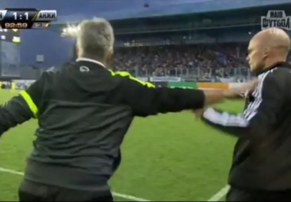 Неприятный инцидент произошел в концовке матча "Анжи" - "Динамо" (Москва). При ничейном результате, уже в добавленное время в ворота "Анжи" был назначен пенальти. Голландский тренер возмутился решением судьи и попытался выйти на поле, толкнув резервного арбитра, который его удерживал.