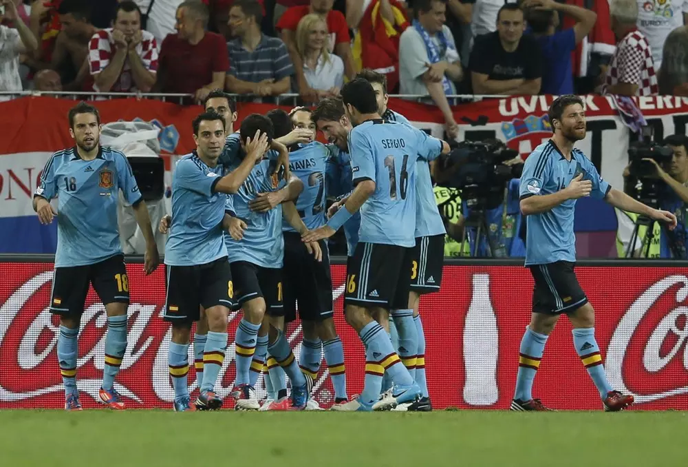 Испания и Италия вышли в плей-офф Евро-2012 Сборная Испании празднует победу. Фото Reuters