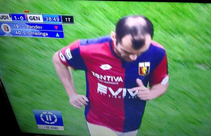 В матче третьего тура Серии А против "Удинезе" 34-летний форвард был заменен в первом тайме. Уходя с поля, он наклонил голову, и камера выхватила лысину македонца. Пользователи соцсетей сравнили узор из проплешин на голове игрока с мужским половым органом.