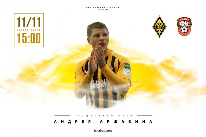 "В матче с карагандинским "Шахтером" клуб и болельщики поблагодарят легендарного футболиста Андрея Аршавина за его яркую карьеру в составе алматинского клуба и игру, которая влюбила в себя всех жителей южной столицы", - говорится в сообщении клуба.